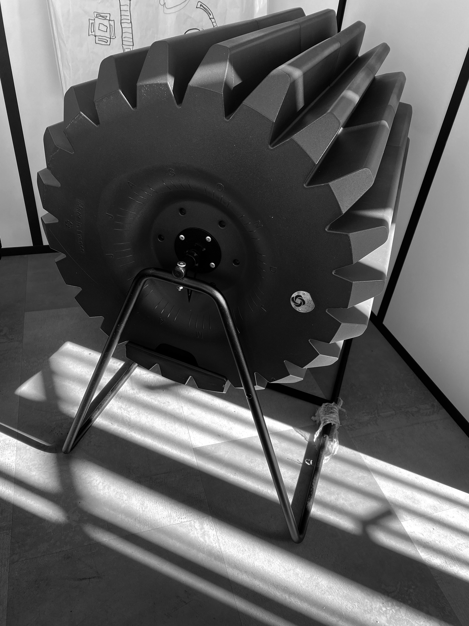 Le profil inspiré de la roue à aubes permet de comprendre instantanément son usage : tourner la roue pour brasser le compost et ainsi accélérer sa maturation.